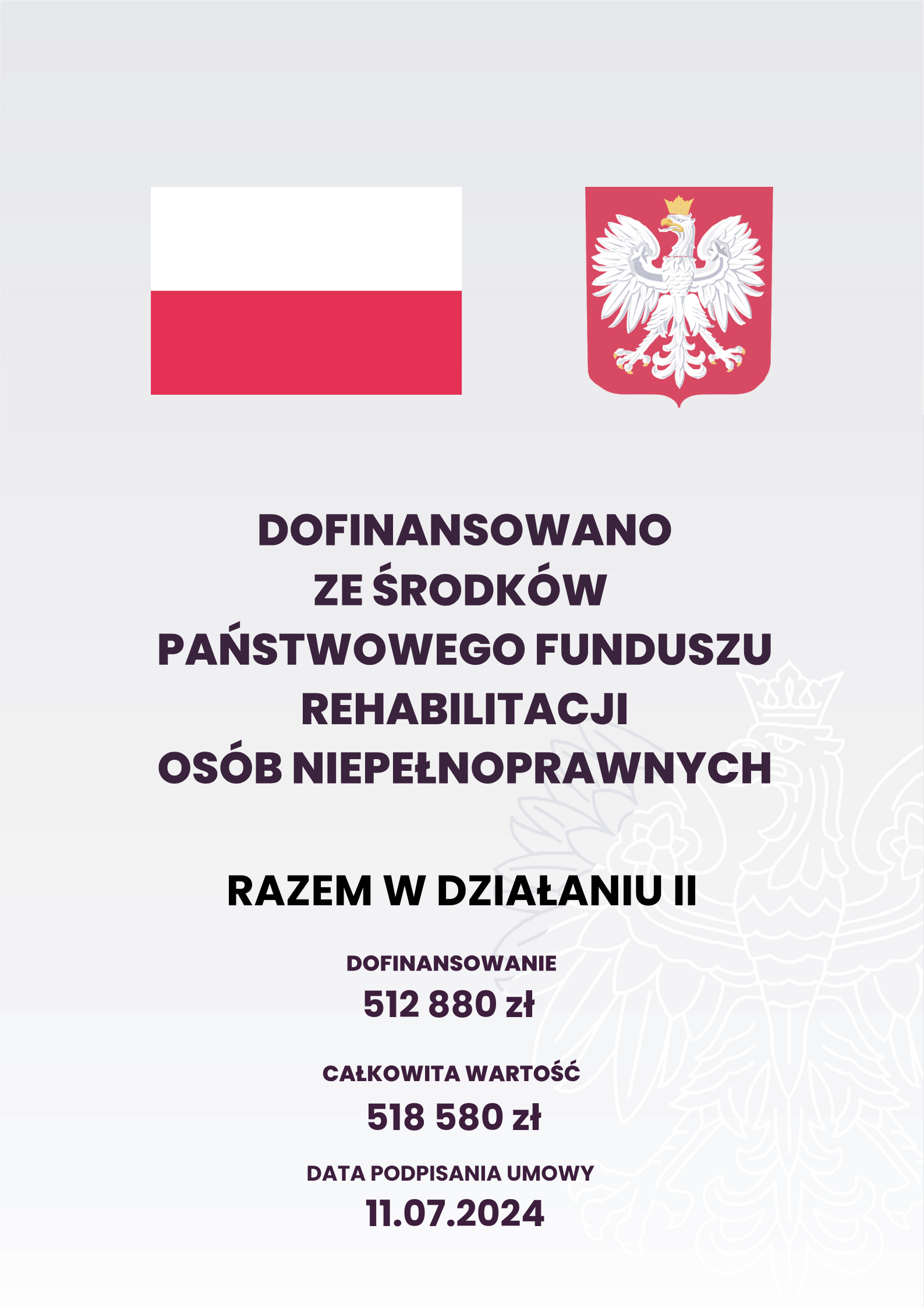 Dobre wieści! Z radością informujemy, że otrzymaliśmy dofinansowanie na realizację projektu Razem w działaniu II - asystenturą objęte zostanie 55 osób!