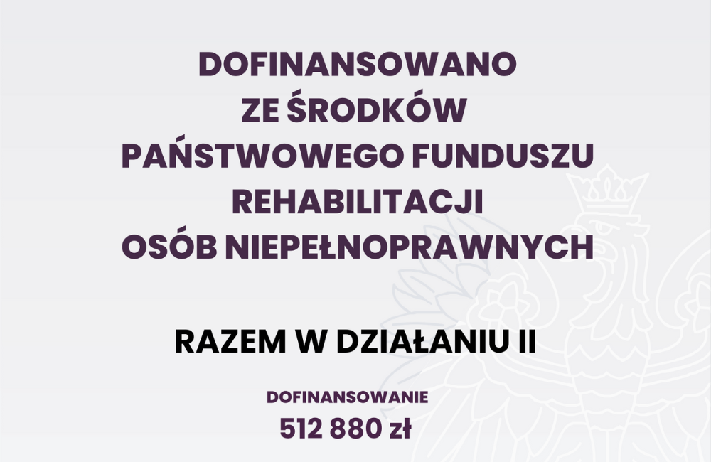 Dobre wieści! Z radością informujemy, że otrzymaliśmy dofinansowanie na realizację projektu Razem w działaniu II - asystenturą objęte zostanie 55 osób!
