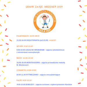 Zapraszamy do zapoznania się z tegorocznym harmonogramem zajęć. Znajdziecie w nim zajęcia sportowe, artystyczne, edukacyjne i terapeutyczne, podzielone na kilka kategorii wiekowych.
